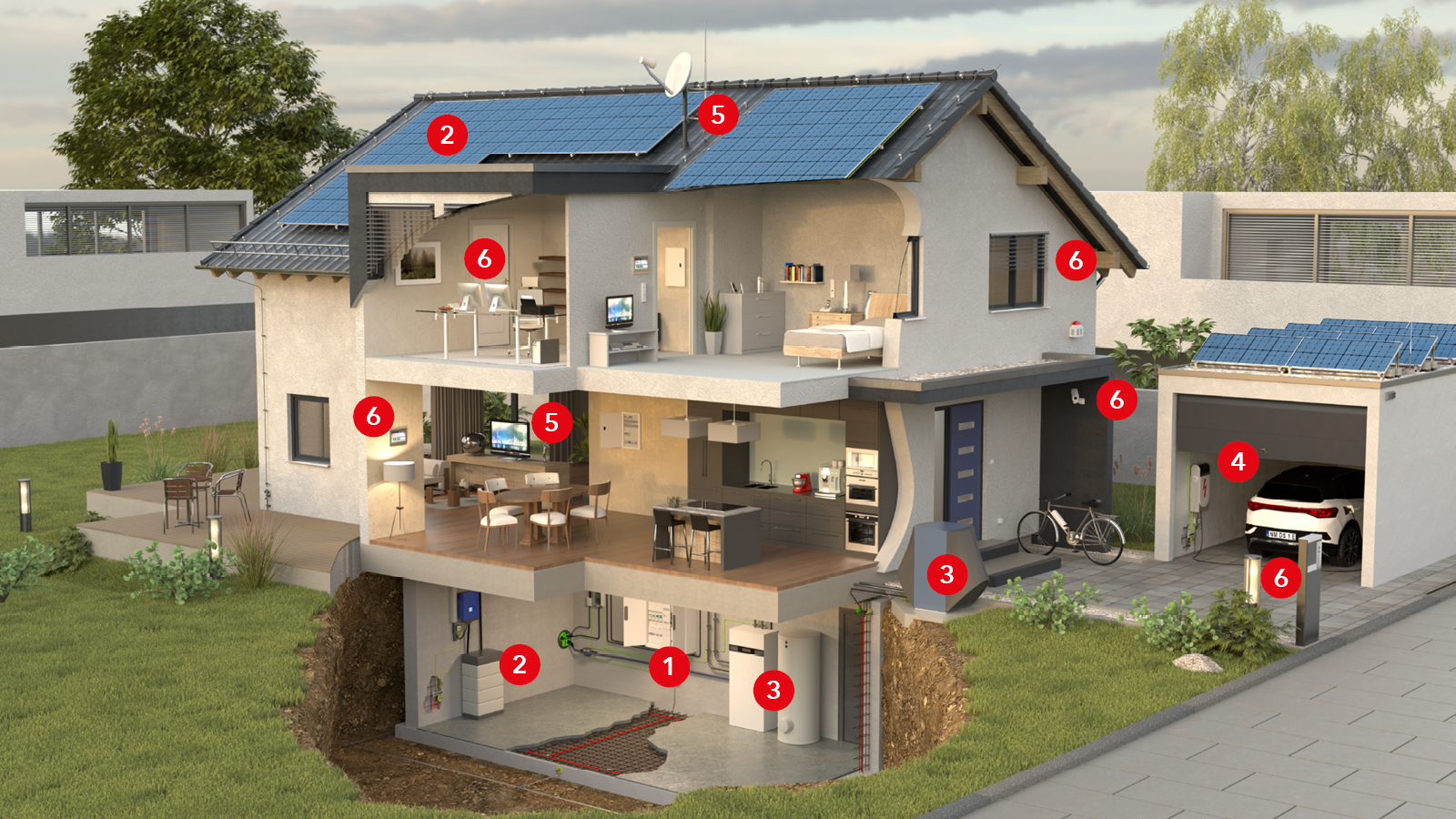 Da moderne Einfamilienhäuser zunehmend elektrischer werden, ist Überspannungsschutz besonders wichtig. Ein wirksames Überspannungsschutzkonzept schützt elektrische bzw. elektronische Systeme und Geräte vor Schäden in Folge von zu hohen Spannungen. Dabei wird die gefährliche Störenergie stufenweise auf ein unbedenkliches Niveau reduziert. So sind Photovoltaikanlage, die Wallbox in der Garage und die smarte Haustechnik sicher geschützt.