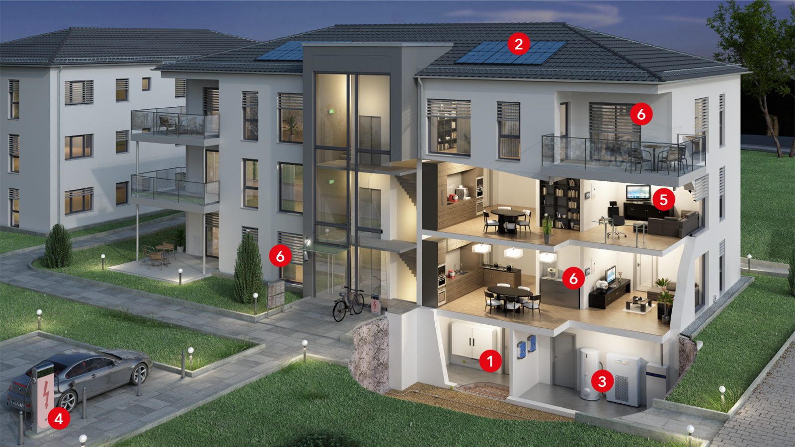 Da moderne Mehrfamilienhäuser zunehmend elektrischer werden, ist Überspannungsschutz besonders wichtig. Ein wirksames Überspannungsschutzkonzept schützt elektrische bzw. elektronische Systeme und Geräte vor Schäden in Folge von zu hohen Spannungen. Dabei wird die gefährliche Störenergie stufenweise auf ein unbedenkliches Niveau reduziert. So sind Photovoltaikanlage, die Ladeinfrastruktur für Elektroautos und das Energiemanagementsystem sicher geschützt.