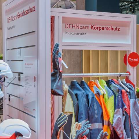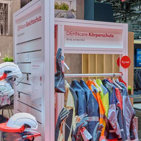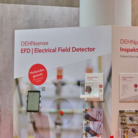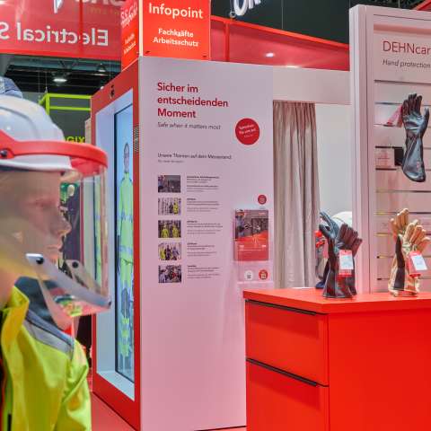 Special highlights at the trade fair were the DEHNsense Electrical Field Detector (EFD), the DEHNproX inspection camera, our portfolios for safe working in electric mobility and our constantly growing range of DEHNcare protective equipment for electricians.