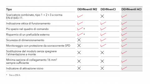 Da oltre 100 anni DEHN è sinonimo di innovazione e progresso tecnologico. Con gli scaricatori CI e ACI, DEHN ha creato soluzioni salvaspazio per offrire una protezione dalle sovratensioni in chiave moderna. CI è l'acronimo di Circuit Interruption e significa che un fusibile dimensionato in modo ottimale è già integrato nell'SPD (Surge Protection Device). Con la tecnologia ACI (Advanced Circuit Interruption) introdotta nel 2018, questo fusibile è stato sostituito da una combinazione interruttore-spinterometro. Queste e altre caratteristiche innovative rendono DEHNventil ACI la soluzione più semplice e sicura. Le nostre classi di scaricatori in sintesi: