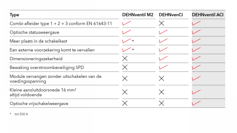 Overspanningsbeveiliging is nog nooit zo eenvoudig en zo veilig geweest. De aansluitklare combi-afleider DEHNventil ACI (type 1 + type 2 + type 3) zorgt voor veiligheid van de binnenkomende voeding van het laagspanningshoofdverdeler - hierdoor is de innovatieve ACI-technologie (Advanced Circuit Interruption) voor het eerst beschikbaar in de klasse van type 1 vermogensschakelaars.