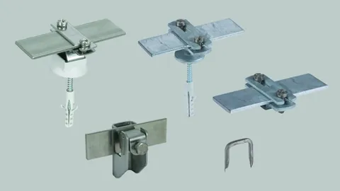 Leitungshalter für Rund- und Flachleiter sowie für Regenfallrohre und Rohrschellen für Regenfallrohre. KS-Verbinder.