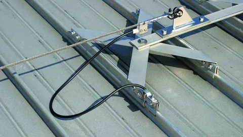 Supports de conducteurs de toit, pièces d'extension et composants de pontage (câbles, bandes, pattes) pour toits plats.