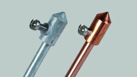 Baguettes de terminaison d'air, pointes de terminaison d'air, mâts télescopiques de protection contre la foudre et accessoires pour la protection de structures ou de bâtiments surélevés sur le toit.