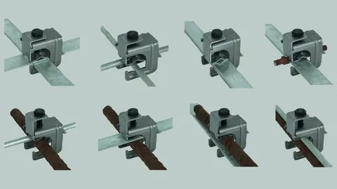 Bornes de mise à la terre et pinces de raccordement fixes pour l'établissement de liaisons équipotentielles. Electrodes de terre et douilles murales pour entrer en toute sécurité des conducteurs dans un bâtiment. Colliers d'armature pour relier l'armature au système de terminaison de terre de telle sorte qu'il peut porter des courants de foudre.