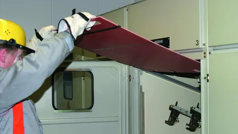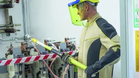 Apparecchiature di sicurezza come: fioretti di manovra, elementi di bloccaggio, rivelatori di tensione, dispositivi di messa a terra e in cortocircuito e piastre isolanti di protezione per lavorare secondo la cinque regole di sicurezza.