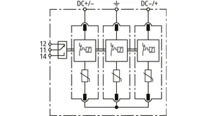 Mehrpoliger, modularer Überspannungs-Ableiter für PV-Anlagen mit Fernmeldekontakt für Überwachungseinrichtung (potentialfreier Wechsler).