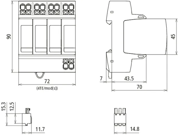 4-poliger modularer, steckbarer Überspannungs-Ableiter