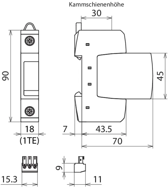 mit integrierter ACI-Schalter-/Funkenstrecke, Breite 1TE
