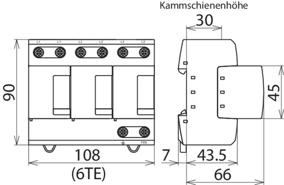 880 V ungeerdete dreiphasige Systeme, Breite 8TE