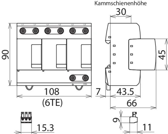 3-poliger modularer steckbarer Kombi-Ableiter