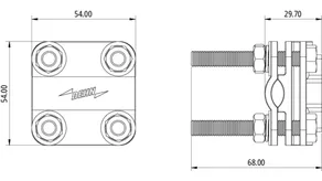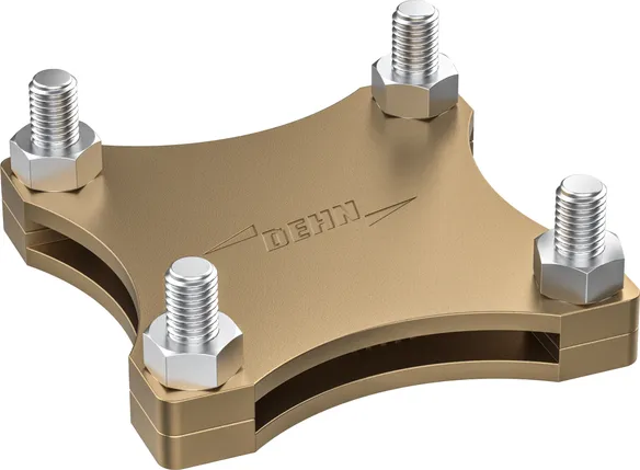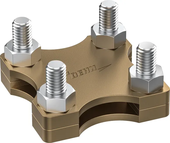 Square Conductor Clamps for interconnecting various sizes of flat, round and stranded conductors in parallel, cross, and T connection arrangements to form a continuous network. Equipped with a countersunk hole for fixing the clamp to structural surfaces. The Clamps have a high resistance to corrosion and show high mechanical strength to ensure a lasting connection.