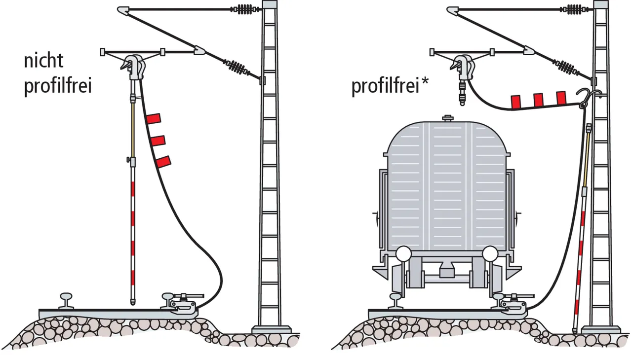 | *) Profile-free earthing means that the earthing cable can be suspended at the tower, thus allowing for limited diesel locomotive operation. | |