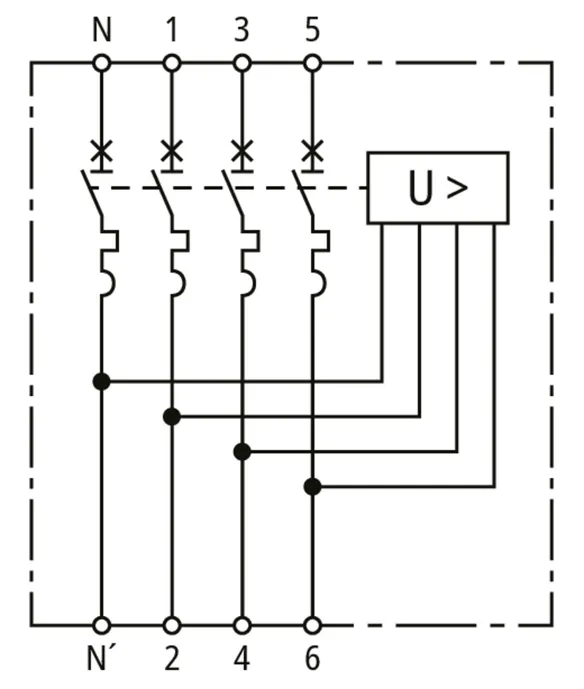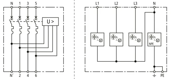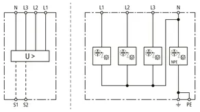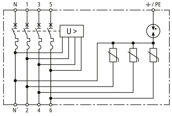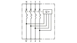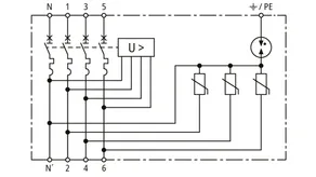| 1 LED indication (separate from SPD) | Undervoltage/overvoltage (red), OK (green) |