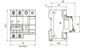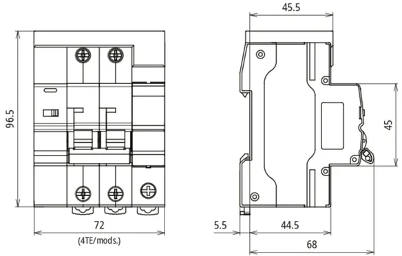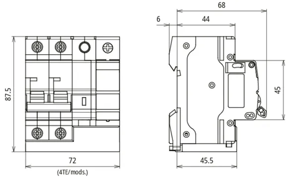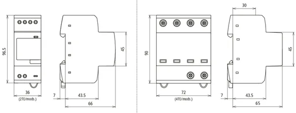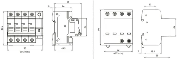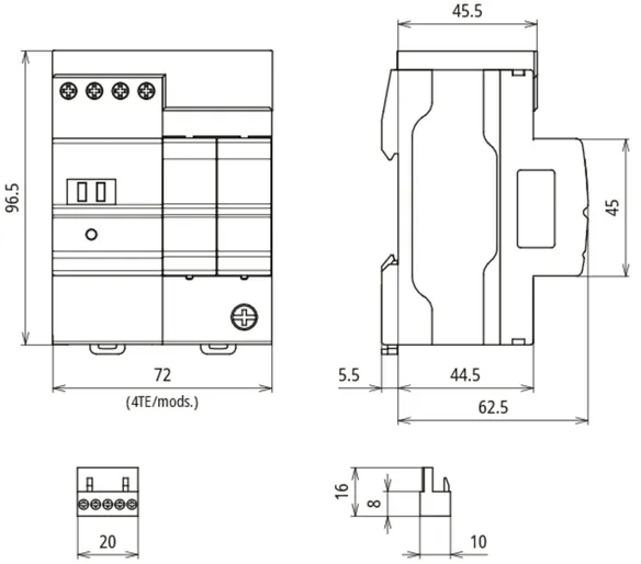 | Dimensions | 4 Standard DIN module, DIN 43880 |