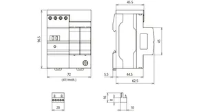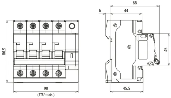 | Dimensions | 5 Standard DIN module, DIN 43880 |