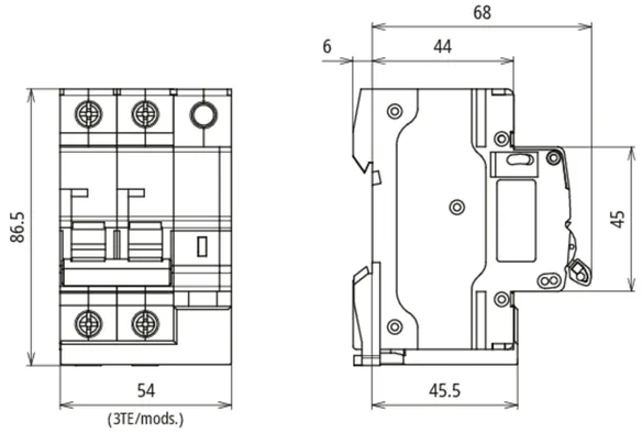 | Dimensions | 3 Standard DIN module, DIN 43880 |