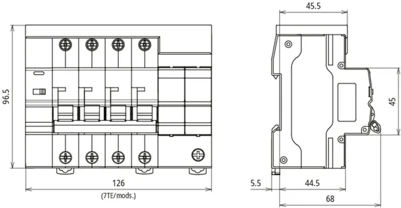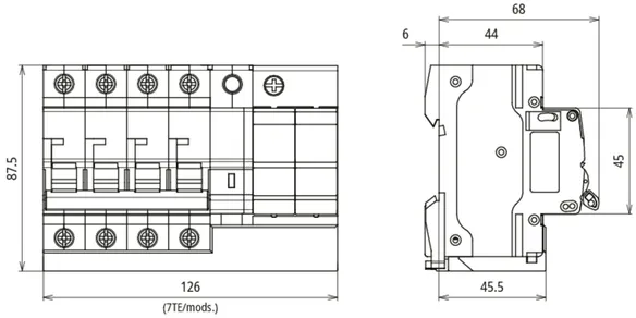 | Dimensions | 7 Standard DIN module, DIN 43880 |