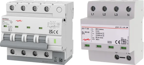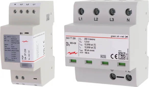 | SPD according to EN 61643-11 / ... IEC 61643-11 | type 1 + type 2 / class I + class II |