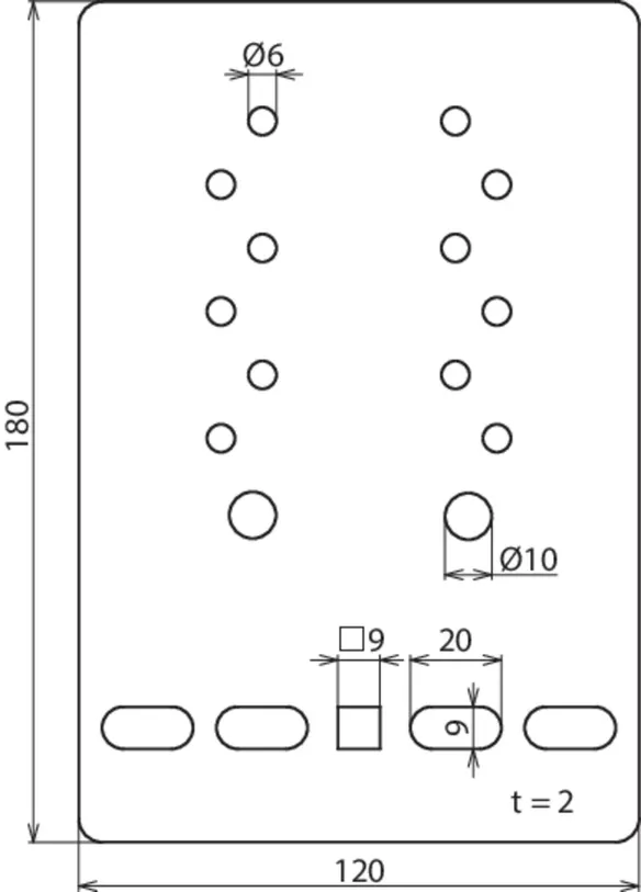 | Fixing holes for cable tray | [4x] 9 x 20 / [1x] 9 x 9 mm |