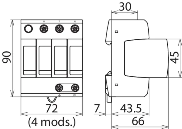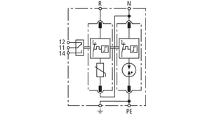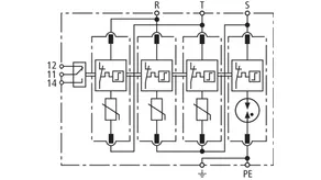Modular surge arrester for use in 1Ø3W100/200V power supply systems; with floating remote signalling contact