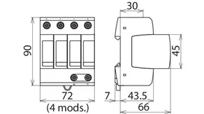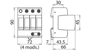 Modular surge arrester for use in 1Ø2W100V power supply systems; with floating remote signalling contact