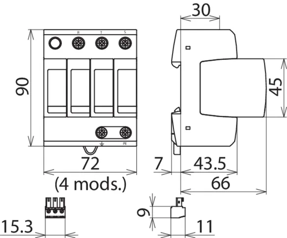 • Complete prewired unit consisting of a base part and plug-in protection modules