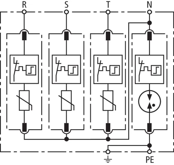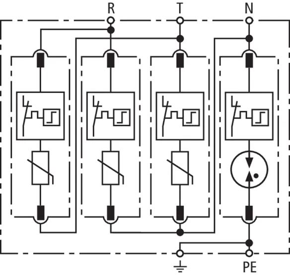 • High discharge capacity due to powerful zinc oxide varistors/spark gaps