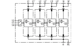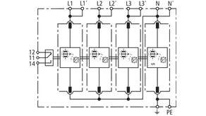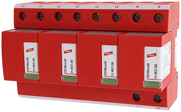 Modular combined lightning current and surge arrester for TT and TN-S systems (3+1 configuration).