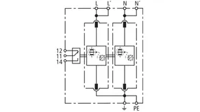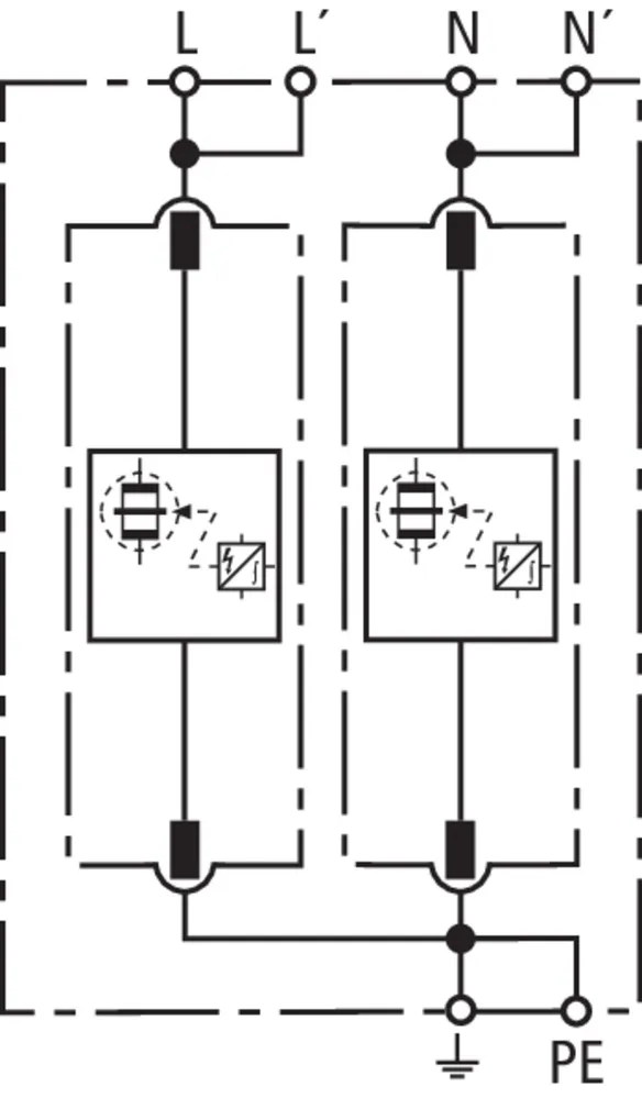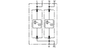 Modular combined lightning current and surge arrester for single-phase TT and TN systems (1+1 configuration).