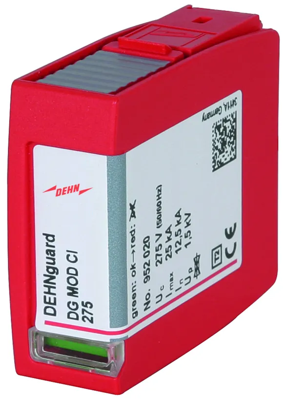 The patented SCI technology with active arc extinction allows to actively, quickly and safely extinguish a possible switching arc in case of overload. The PV fuse integrated in the short-circuit path trips immediately after the arc has been extinguished, thus ensuring safe electrical isolation (interruption). Consequently, all PV arresters from DEHN combine surge protection, fire protection and personal protection in a single device