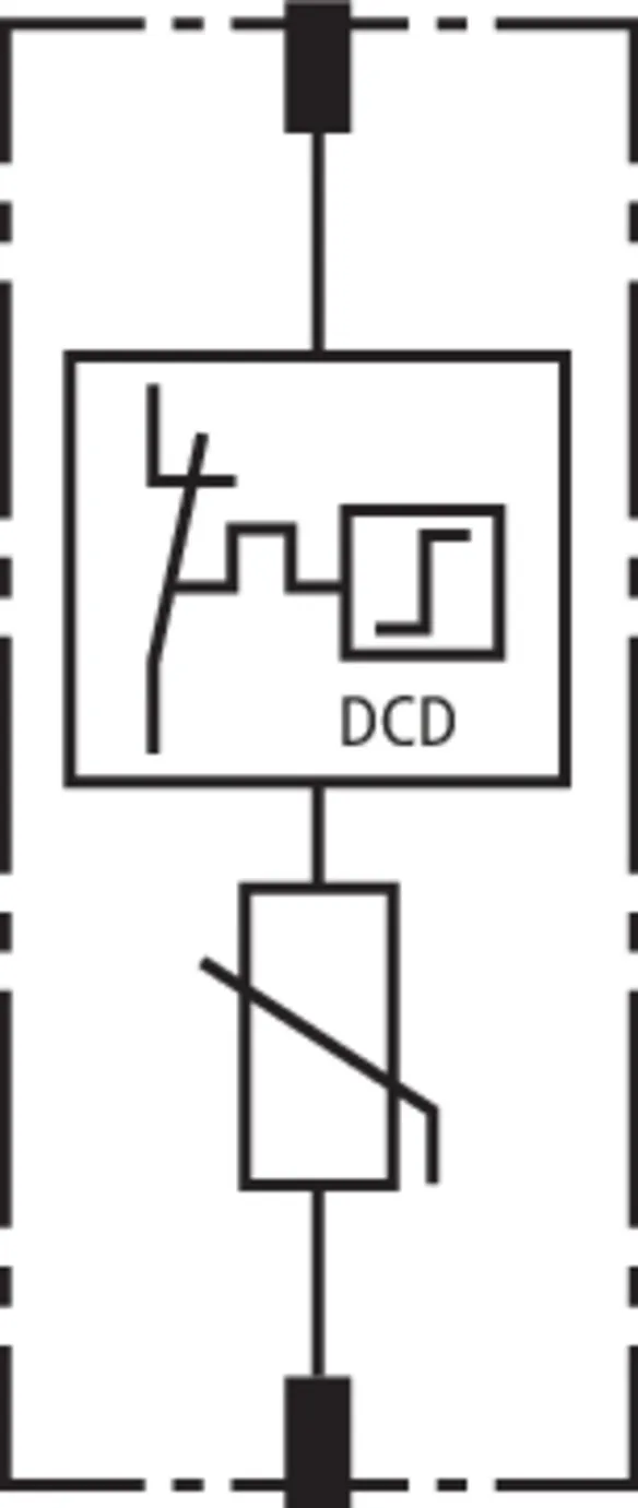 When using surge arresters in d.c. applications, disconnection must be reliably ensured even if there are no zero crossings. The specifically developed DC Disconnection (DCD) technology acts as a wedge similar to a blocking valve and interrupts the direct current. Consequently, the devices of the DEHNguard SE DC series are capable of safely interrupting direct currents, thus preventing fire damage caused by d.c. switching arcs.