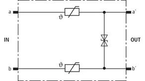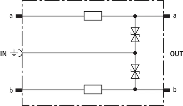 Protective plug (one pair), energy-coordinated with DRL plug-in SPD block, for use as single-stage protective device for terminal equipment. Low voltage protection level line-line for unearthed interfaces. To be mounted into EF 10 DRL. Installation recommended only in combination with DRL plug-in SPD block.