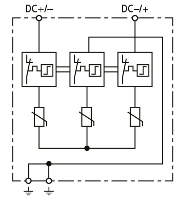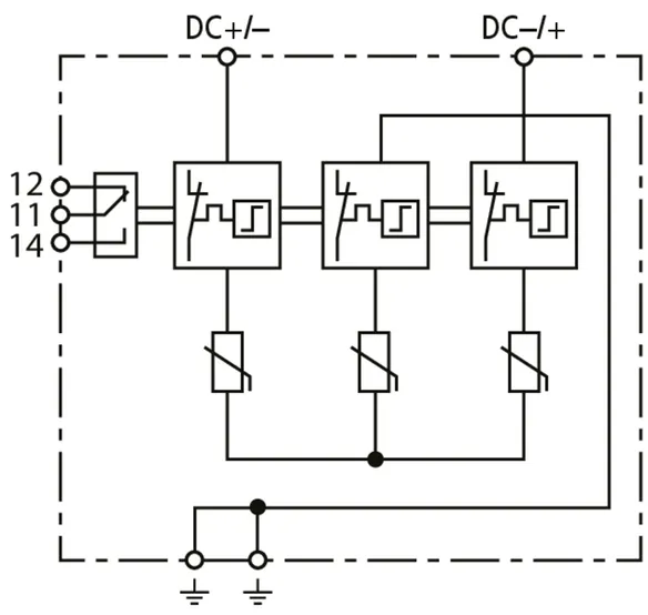 Total discharge current (10/350 µs) [DC+/DC- -> PE] (Itotal ) 12.5 kA