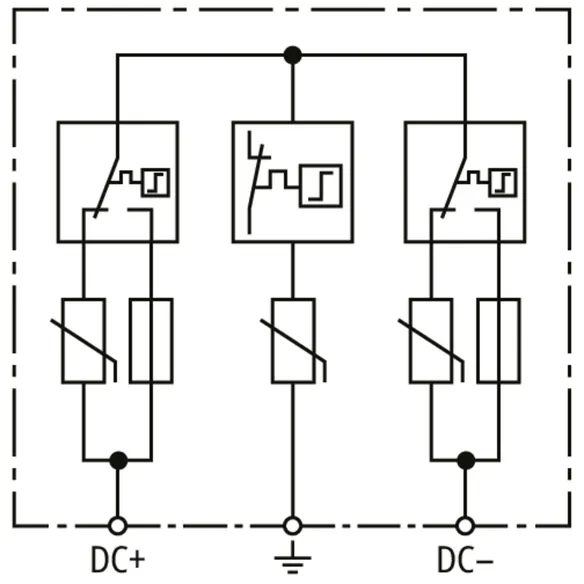 | Max. discharge current (8/20 µs) [(DC+/DC-) --> PE] (Imax ) | 40 kA |