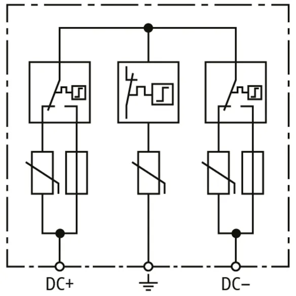 Max. discharge current (8/20 µs) [(DC+/DC-) --> PE] (Imax ) 25 kA