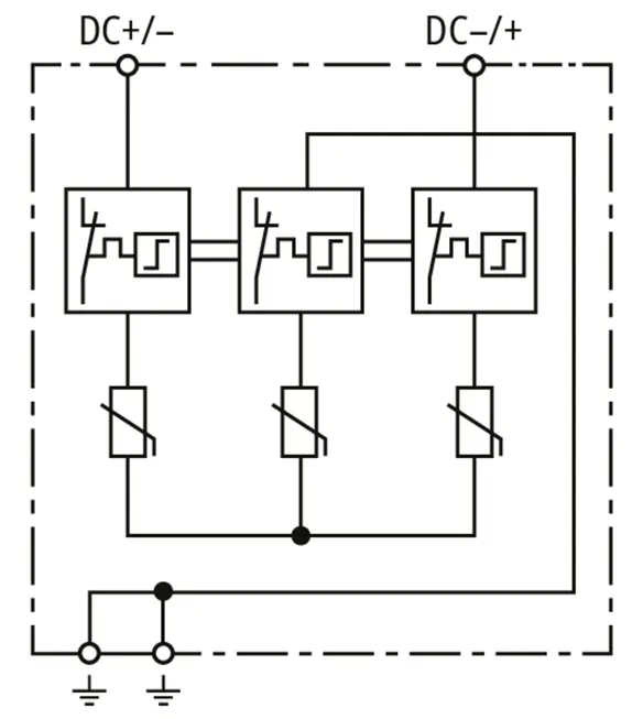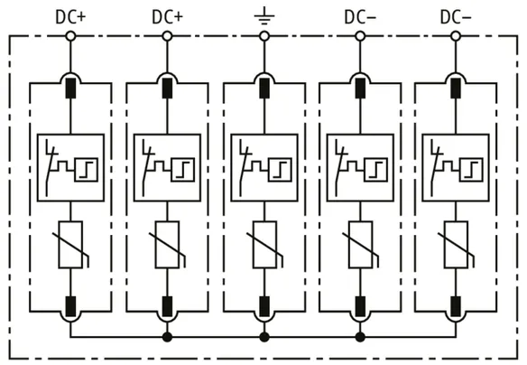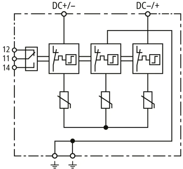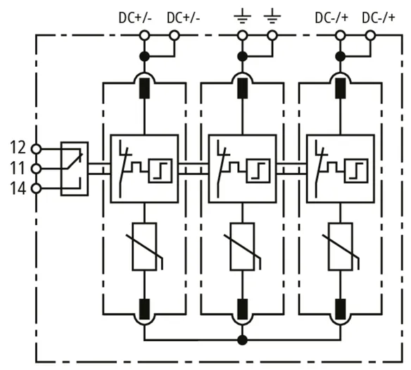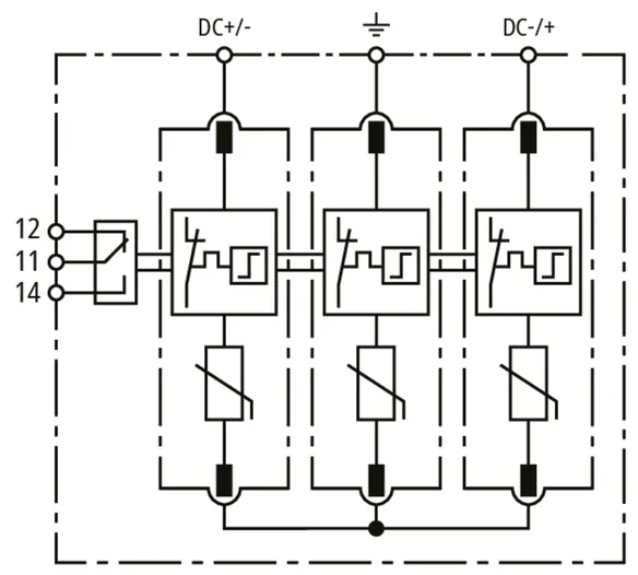 Nominal discharge current (8/20 µs) [(DC+/DC-) --> PE] (In ) 12.5 kA