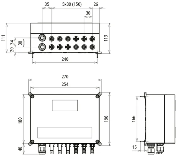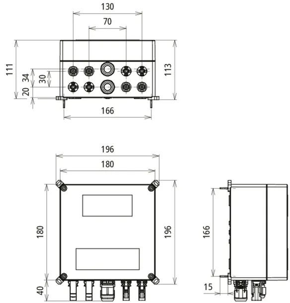 Cable entry: 2x 3-way screw connection (2.5 mm² – 6 mm² PV conductor)