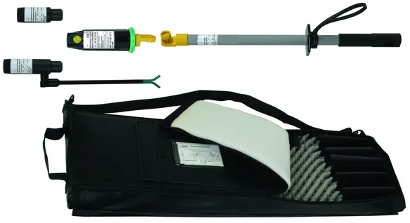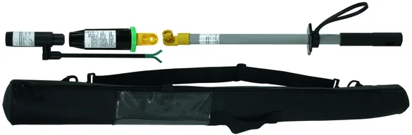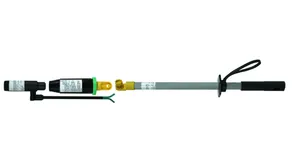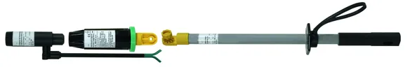 The green ring on the ASP distance voltage detector with category "L" electric field sensor is used to make contact with the last earthed protective fitting in such a way that the electric field sensor points in the direction of the overhead conductor fixed at the other end of the insulator.