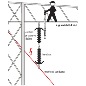If an earthed protective fitting is available, contact is made at the next possible insulator plate above the protective fitting.