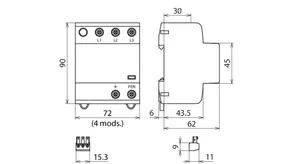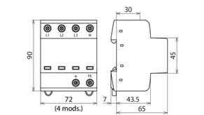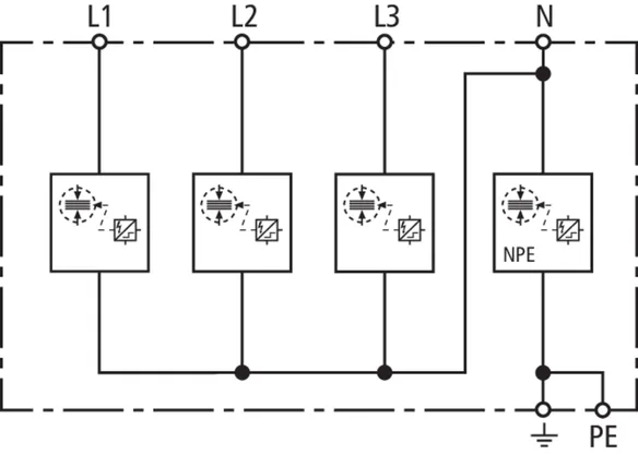 | Lightning impulse current (10/350 µs) [L1+L2+L3+N-PE] (Itotal ) | 30 kA |