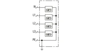 | Lightning impulse current (10/350 µs) [L1+L2+L3-PEN] (Itotal ) | 22.5 kA |