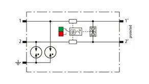 Space-saving, compact surge arrester with a width of 6 mm and push-in connection technology with status indication. Finely limiting, single-stage surge protection with powerful diodes for protecting two single cores sharing a common reference potential as well as unbalanced interfaces.