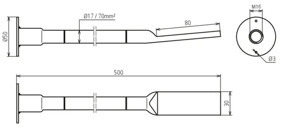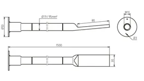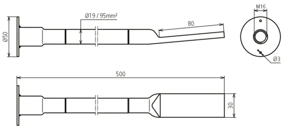 | Borehole cable lug | 13 mm for M12 and 17 mm for M16 |