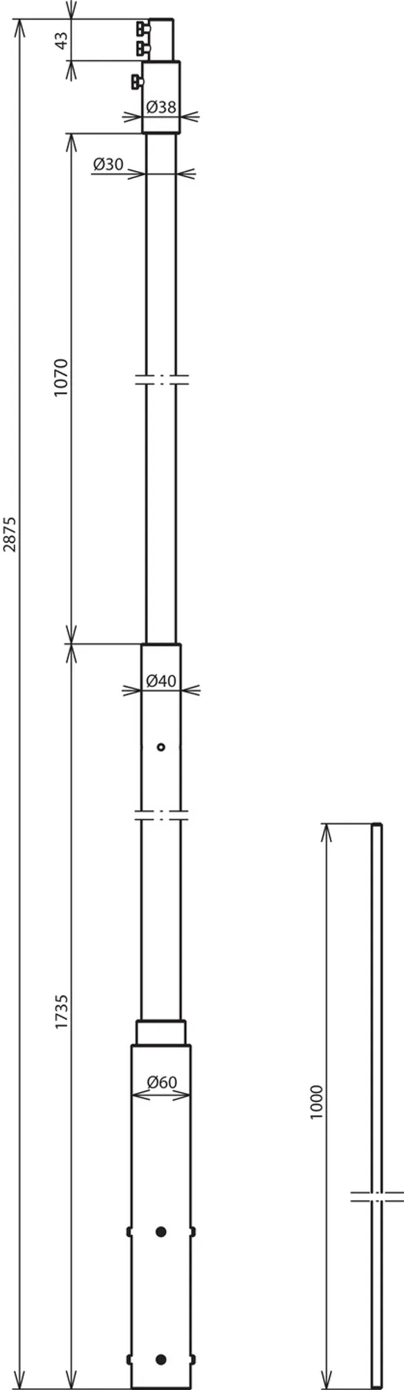 Combined with air-termination tip, Ø10 mm, length 1000 mm, StSt