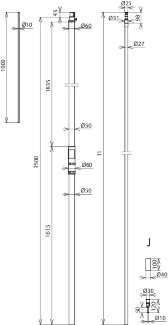 | Max. free length with air-termination rod (wall mounting) | 5500 mm |