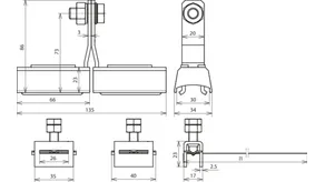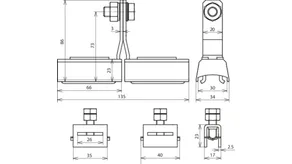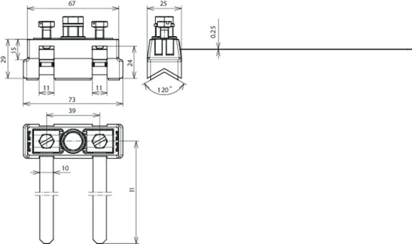 – Round conductors made of Cu, St/tZn, Al, StSt with Ø8/10 mm or flexible / stranded copper conductors with a cross section of 16–35 mm2 with crimped cable lug made out of E-Cu (DIN 46235)