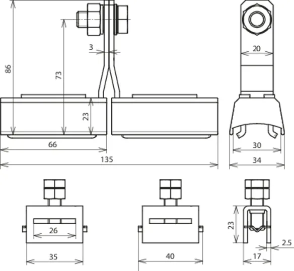– flat conductor made of copper with minimum dimensions 20 x 2.5 mm with a hole Ø10.5 mm