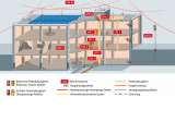 LPZ 0B = Zone, die gegen direkte Blitzeinschläge geschützt, aber durch das volle elektromagnetische Feld des Blitzes gefährdet ist. Die inneren Systeme können anteiligen Blitzströmen ausgesetzt sein.