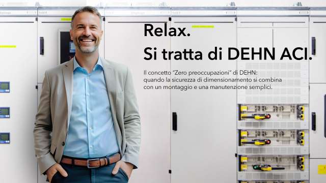 Grazie all'innovativa tecnologia ACI di DEHN, il dimensionamento del fusibile di protezione e cavi di collegamento risulterà più veloce ed intuitivo senza dover scegliere la protezione di back-up poiché è integrata nell’SPD. Quindi, relax: